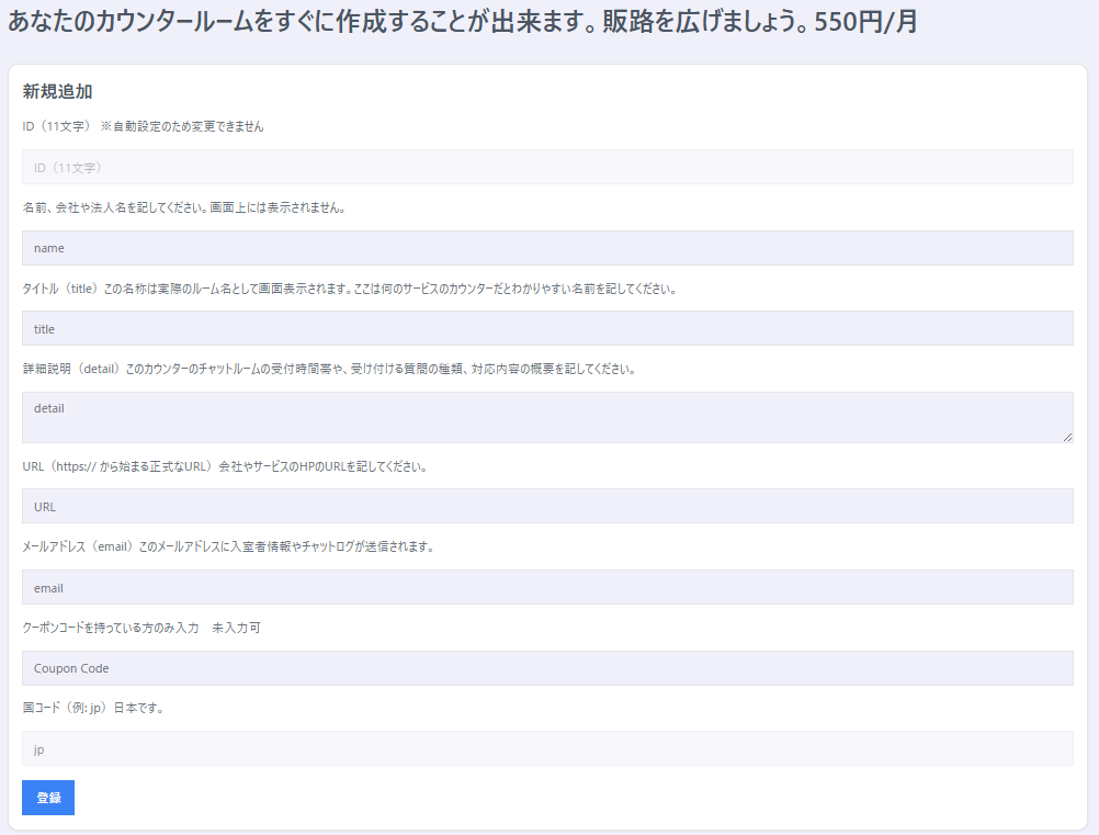 Chamuroには「カウンター」という 顧客対応用の専用チャットルームがあります。